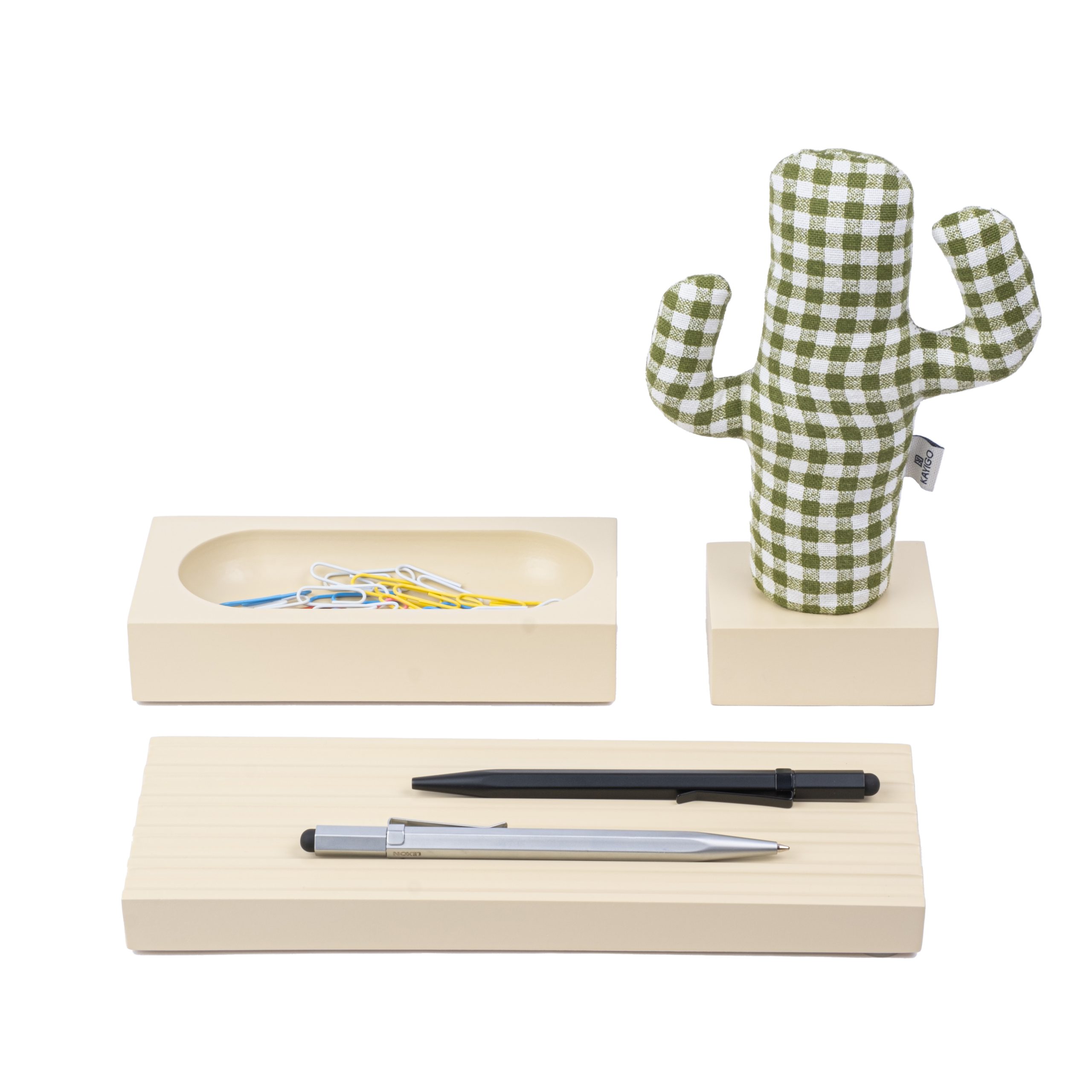 Bir adet kalemlik, hazne ve kaktüs notluk beraber gelmektedir. 3 adet raptiye dahildir.